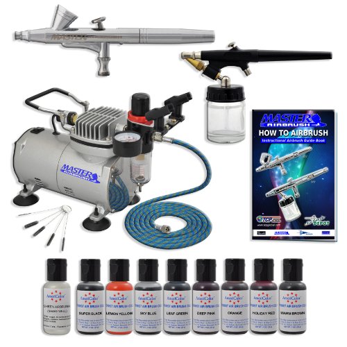 This deluxe cake decorating kit from Master Airbrush includes everything needed to create great looking, professional cakes. This kit Airbrush-Depot Model TC-20 Maintenance Free Air Compressor High-Performance Compressor that includes an Air Regulator with Gauge & Water Trap Filter, Automatic On/Off Shutoff and Thermal Protection from over heating (Full 2-Year Warranty) Compact and lightweight (8 lbs.) with easy-carry handle. Master Airbrush Models G25 Gravity Feed Airbrush, E91 Siphon Feed Airbrush. Complete System includes: Master Airbrush Model G25 Airbrush Set Comes with a 0.2mm needle/noz
