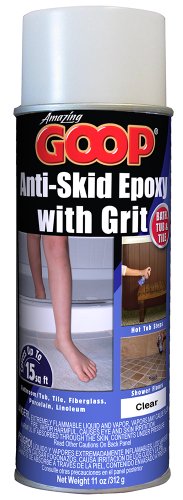 Amazing GOOP Anti-Skid Epoxy for Bath, Tube and Tile provides a hard, flat, textured finish that helps prevent slip and fall accidents in bathtubs, showers, on tile floors, hot tub steps and much more. It’s friendly on bare feet, lead-free and resists chemical cleaners. Anti-Skid Epoxy can be used indoors or outdoors, and is ideal for wet and slippery areas. The convenient aerosol can is a perfect solution to coat smaller or irregularly shaped surfaces, and can be used on properly prepared wood, concrete, metal, fiberglass, tiles, porcelain and many more surfaces.